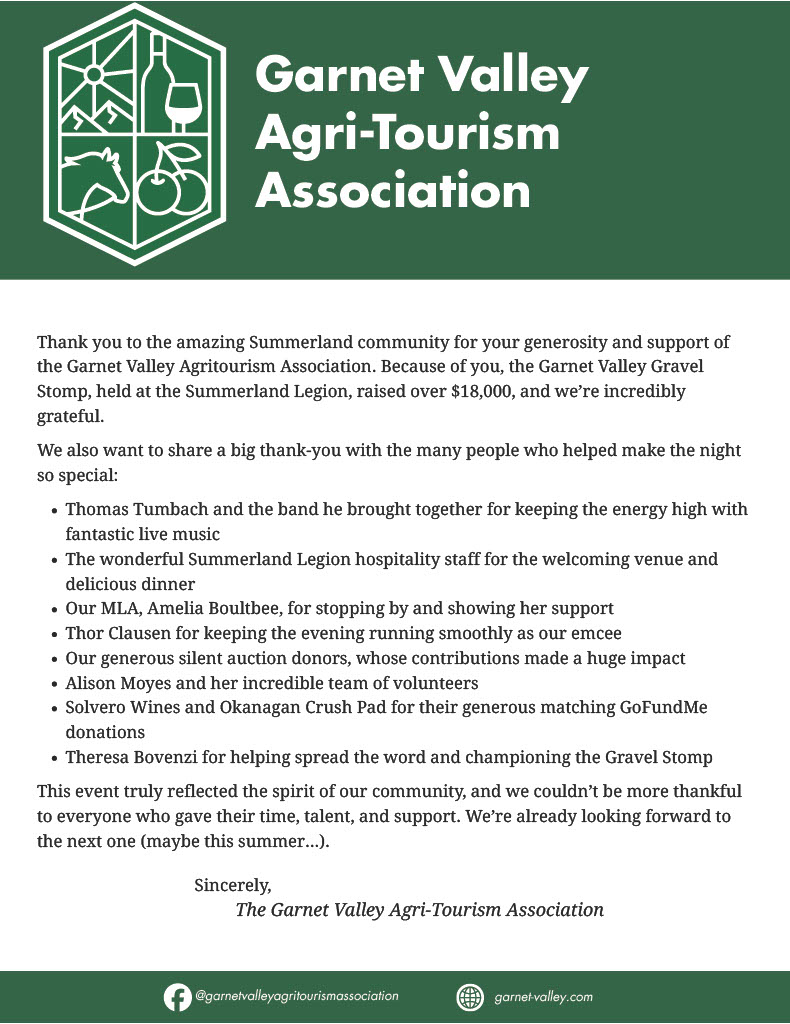 Supporting Agriculture and Tourism in Garnet Valley, Summerland BC